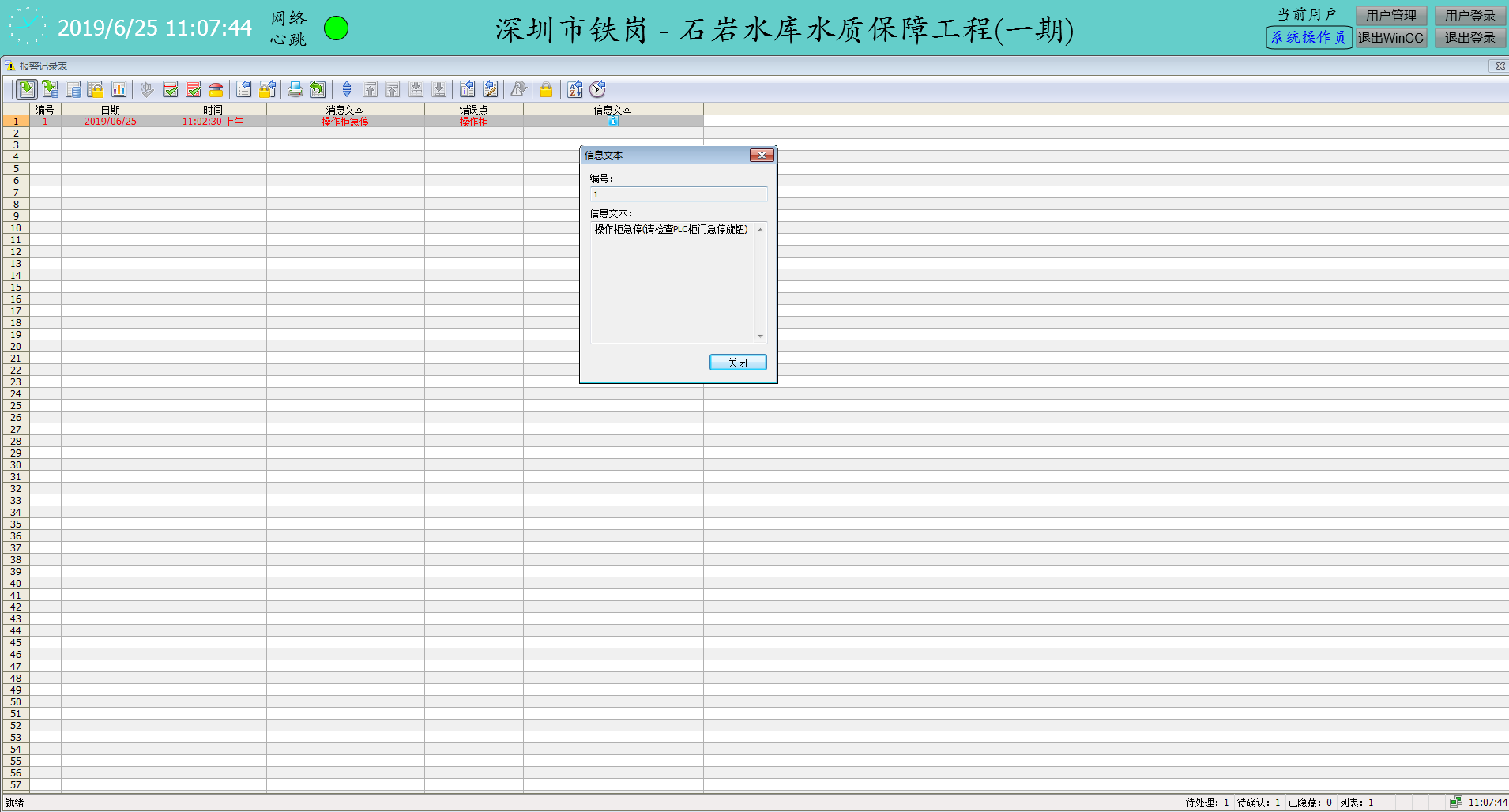 合肥鴻昇自動(dòng)化承接深圳市鐵崗石巖水庫-水質(zhì)保障工程(一期)污泥石灰干化系統(tǒng)本項(xiàng)目為石巖水庫水質(zhì)保障工程污泥石灰干化系統(tǒng)。具有各設(shè)備的配電系統(tǒng)、自動(dòng)化控制系統(tǒng)與視頻監(jiān)控系統(tǒng)。主控室配備監(jiān)控系統(tǒng)上位機(jī)與自動(dòng)化控制上位機(jī)以及日常系統(tǒng)報(bào)表打印機(jī)等。自控系統(tǒng)采用西門子1200PLC、西門子KTP1200觸摸屏以及西門子WinCC上位機(jī)組態(tài)軟件通過S7以太網(wǎng)通訊連接控制,同時(shí)與項(xiàng)目上PLC系統(tǒng)采用以太網(wǎng)連接讀寫信號(hào)與命令,實(shí)現(xiàn)整套污泥石灰干化系統(tǒng)的自動(dòng)化。設(shè)備通過采集現(xiàn)場信號(hào)運(yùn)行和保護(hù),具有本地控制與遠(yuǎn)程控制,同時(shí)每臺(tái)設(shè)備的供電系統(tǒng)出現(xiàn)故障都會(huì)報(bào)出相應(yīng)故障,系統(tǒng)同時(shí)配備了運(yùn)行模式與調(diào)試/維修模式,更方便與前期調(diào)試與后期維護(hù)。上位機(jī)通過系統(tǒng)采集信號(hào)生成日常數(shù)據(jù)報(bào)表、設(shè)備故障報(bào)表、設(shè)備數(shù)據(jù)曲線圖等都可一鍵打印等功能,同時(shí)具有操作等級(jí)權(quán)限,管理員可自由添加和更改操作員密碼。
