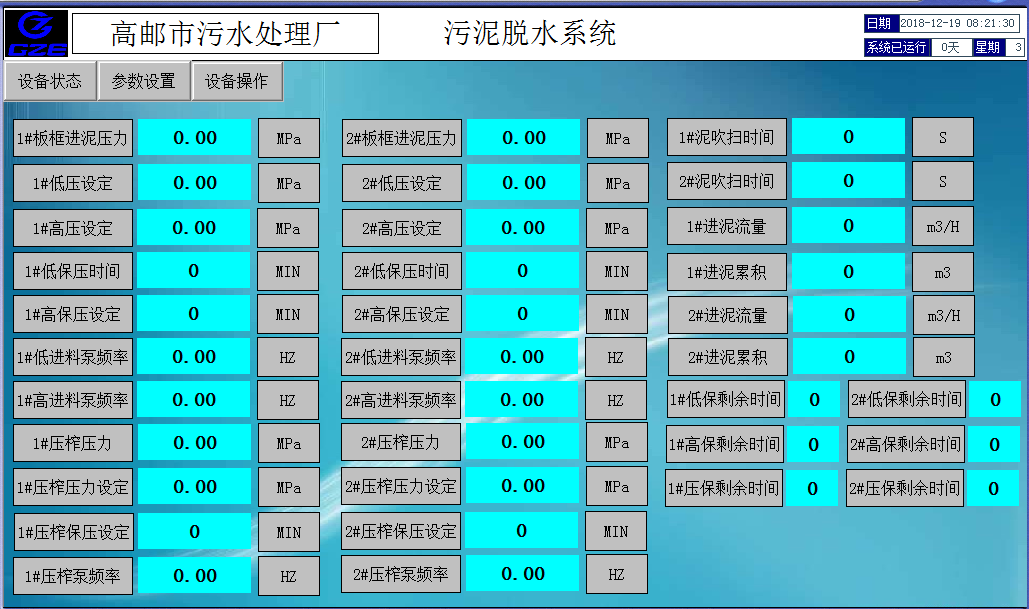 進(jìn)泥壓力和壓榨壓力變送器實(shí)時(shí)顯示當(dāng)前值,控制進(jìn)料和壓榨的壓力。