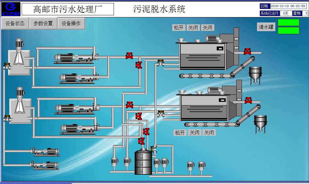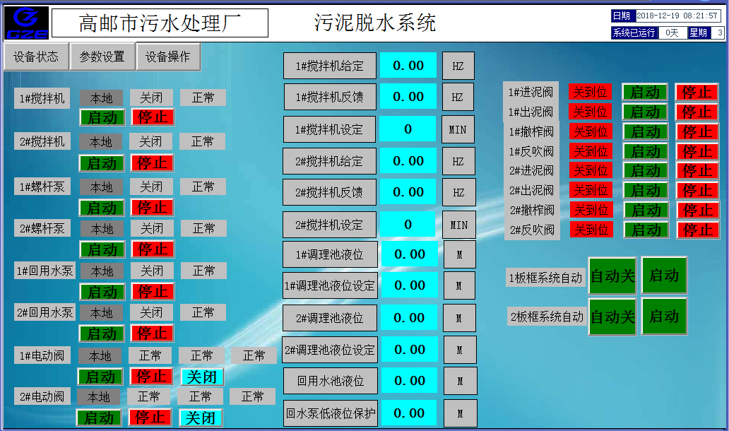 調(diào)理池上液位計(jì)可以根據(jù)經(jīng)驗(yàn),打滿一個(gè)板框需要多少污泥量,設(shè)置液位上限,控制進(jìn)泥螺桿泵的啟停。